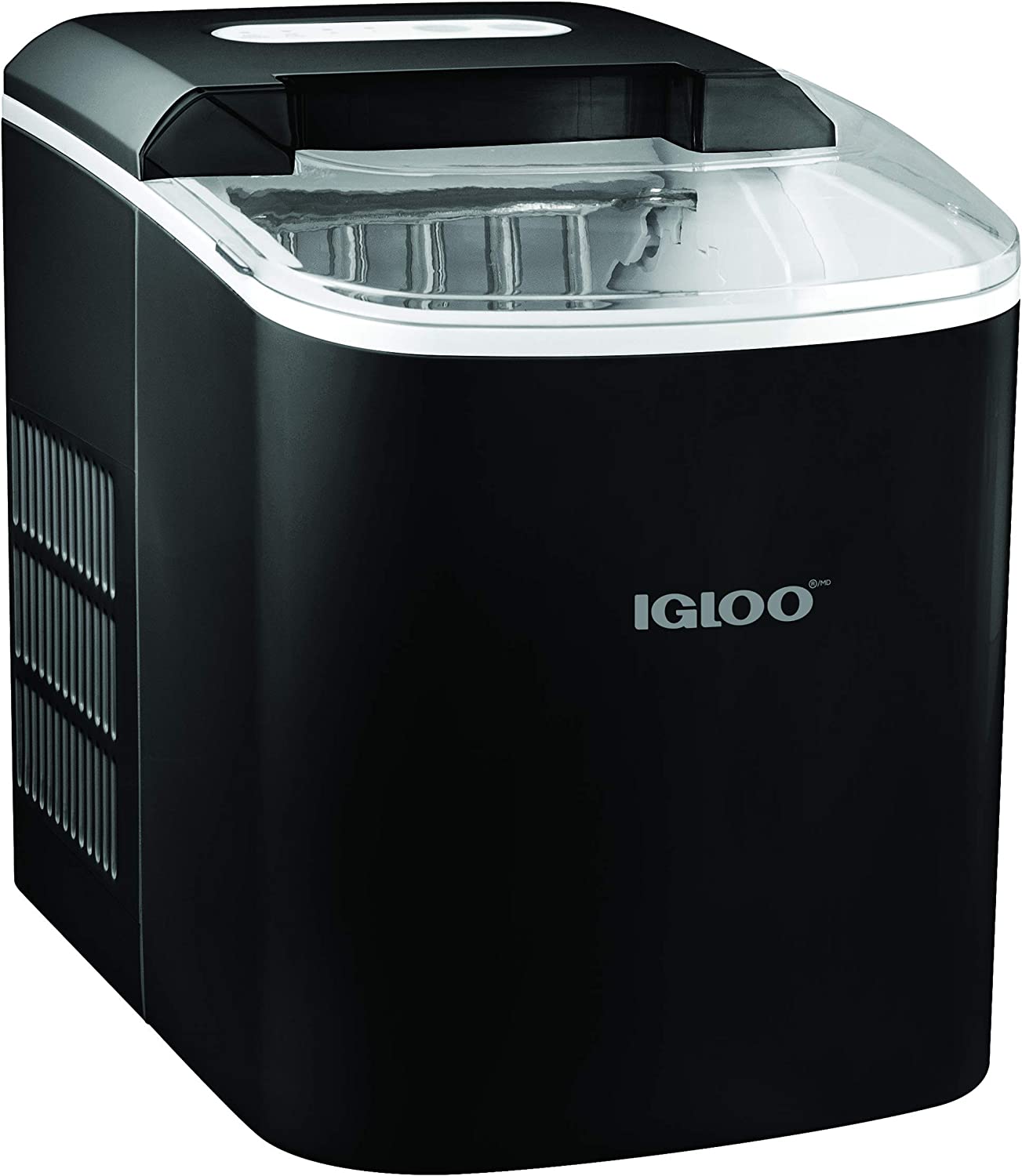 The removable igloo ice basket allows you to take ice from the ice maker and store it in your freezer or transfer it to an ice bucket in your home bar. The unit even comes with a handy ice cream scoop! Turn on the device to choose between small or large ice cube sizes. LED lights illuminate your selections, letting you know when the ice basket is full and when to add water to the water reservoir.