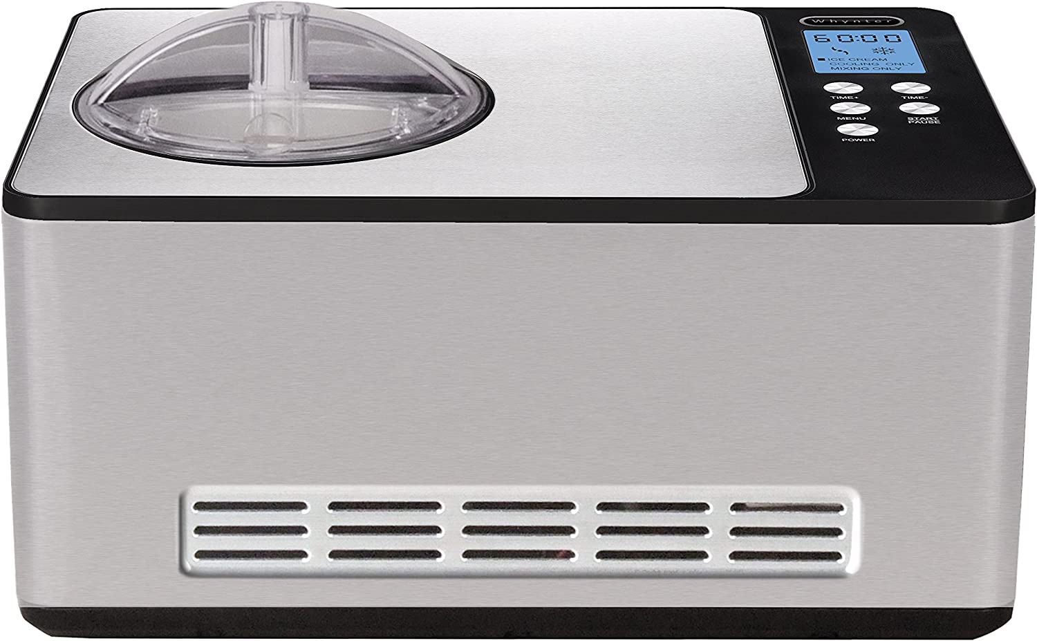 Whynter has an add spout and programmed menu option to pause the churning for add-ons. Its 2.1-liter capacity allows you to make lots of ice cream in a short time. The machine's automatic functions are extremely user-friendly and make ice cream easy and fun.